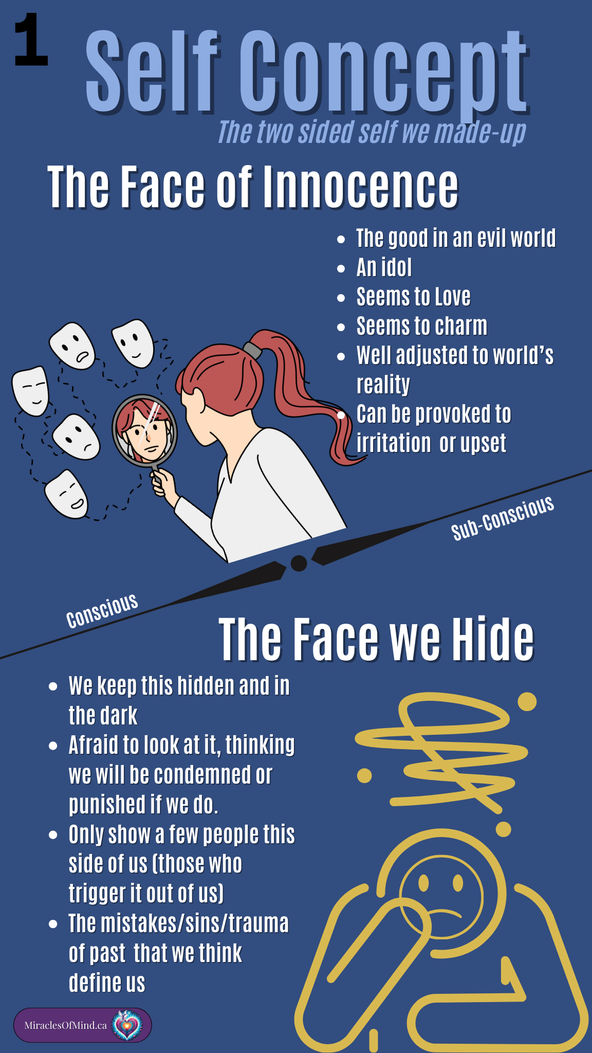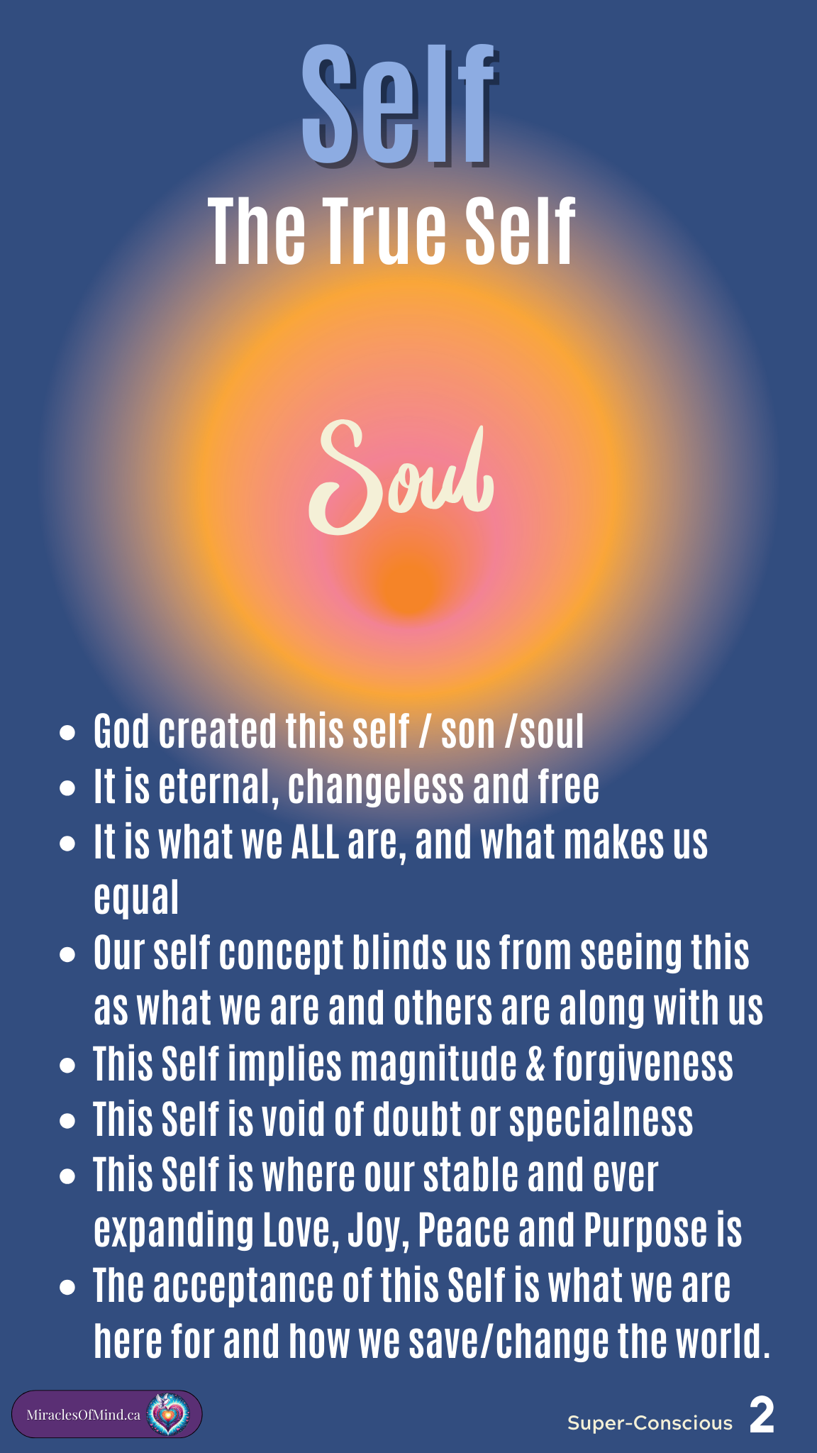 In the video I made called “Self vs self concept” I show the difference between the self we made and the Self that God created. Understanding the difference is essential for us if we want peace. I have made infographics of the Self and Self Concept for you to review and study from. I devised these from referencing what it says about them in A Course in Miracles Chapter 31 V.